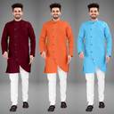 Pack of 3 Men Self Design Cotton Blend Trail Cut Kurta (Multicolor)