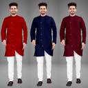 Pack of 3 Men Self Design Cotton Blend Trail Cut Kurta (Multicolor)