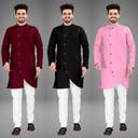 Pack of 3 Men Self Design Cotton Blend Trail Cut Kurta (Multicolor)