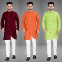 Pack of 3 Men Self Design Cotton Blend Trail Cut Kurta (Multicolor)