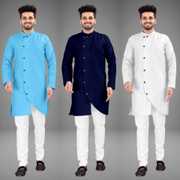 Upgrade your wardrobe with this exclusive combo of three stylish men's cross kurtas, designed for the modern man who values both elegance and comfort. Each kurta in this set is crafted with high-quality fabric, ensuring a soft and breathable feel that is perfect for all-day wear.