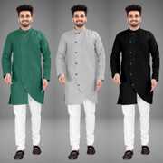 Pack of 3 Men Self Design Cotton Blend Trail Cut Kurta (Multicolor)