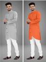 DIAMOND CLUSTER Pack of 2 Men Self Design Cotton Blend Asymmetric Kurta (Multicolor)