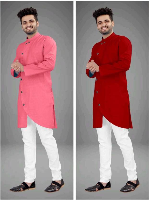 DIAMOND CLUSTER Pack of 2 Men Solid Cotton Blend Asymmetric Kurta  (Multicolor)