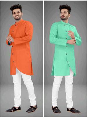DIAMOND CLUSTER Men Solid Asymmetric Kurta Reviews