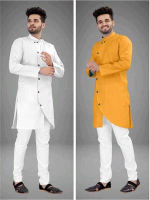 DIAMOND CLUSTER Men Solid Asymmetric Kurta Reviews
