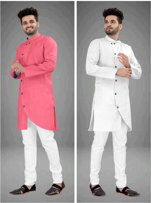 DIAMOND CLUSTER Men Solid Asymmetric Kurta Reviews