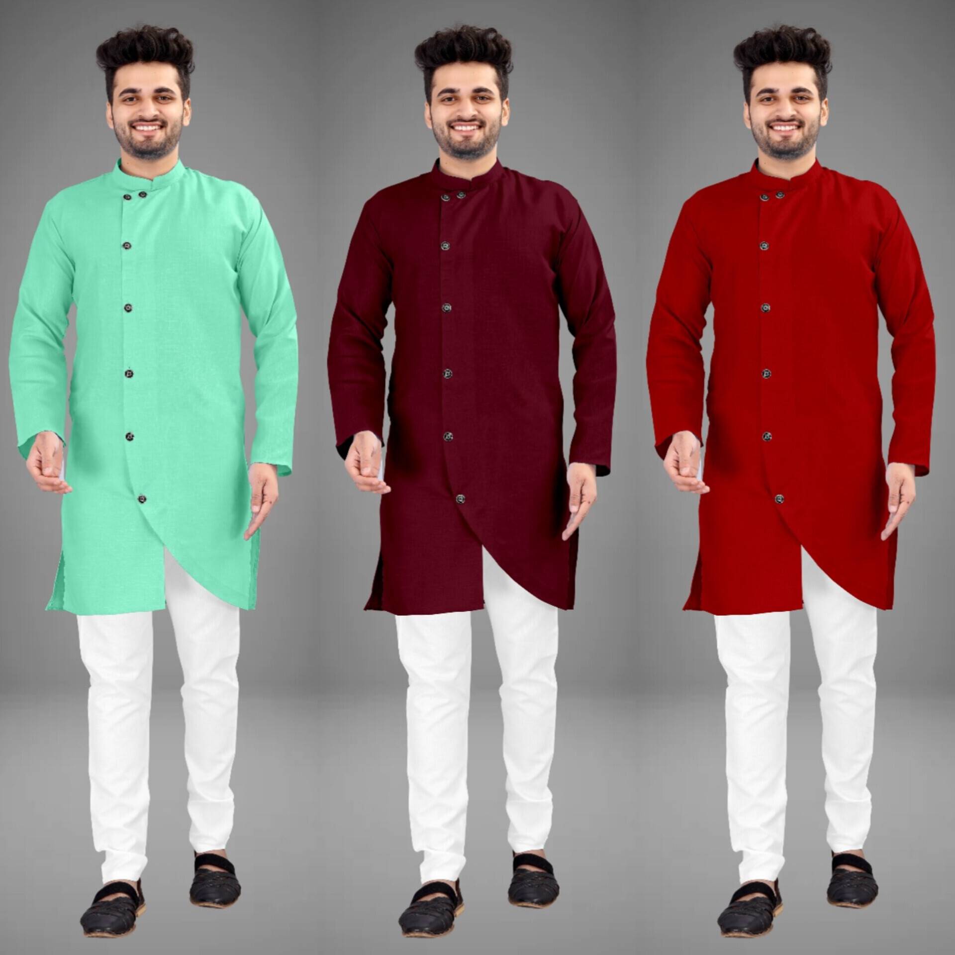 3 Men's Cross Kurtas in different colors