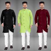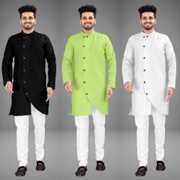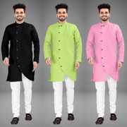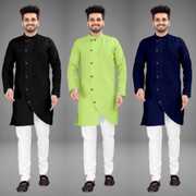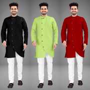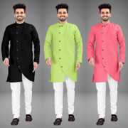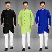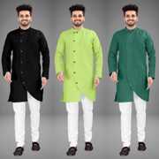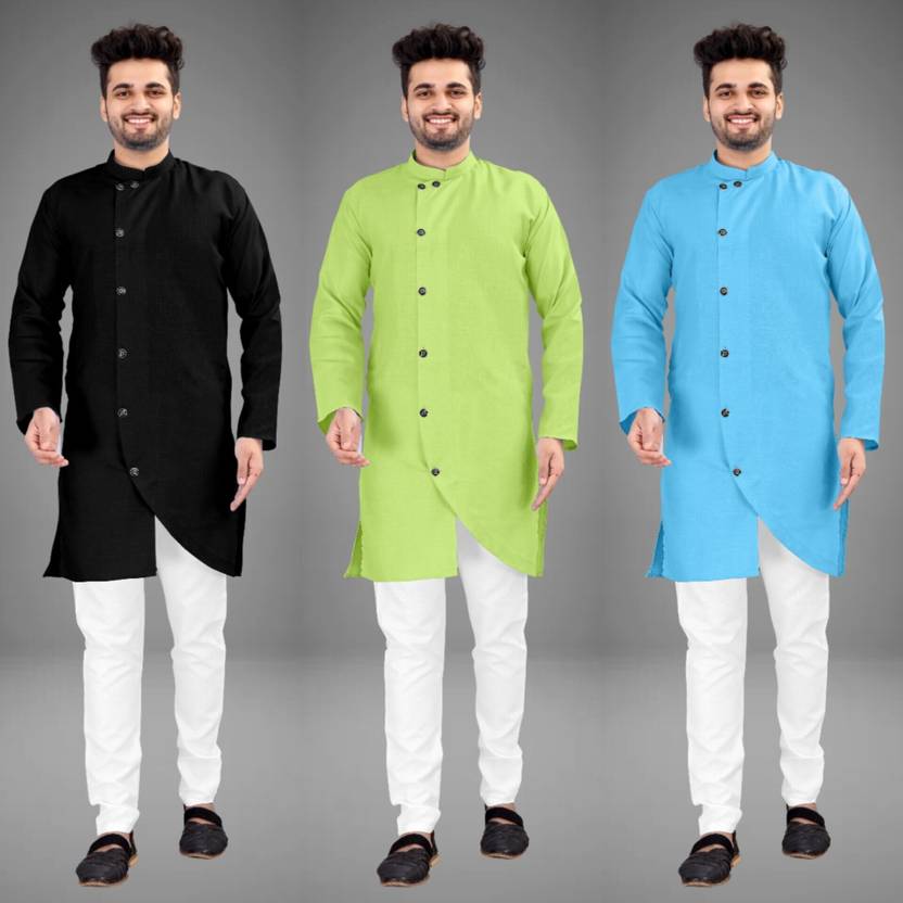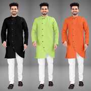 Pack of 3 Men Solid Cotton Blend Trail Cut Kurta (Multicolor)