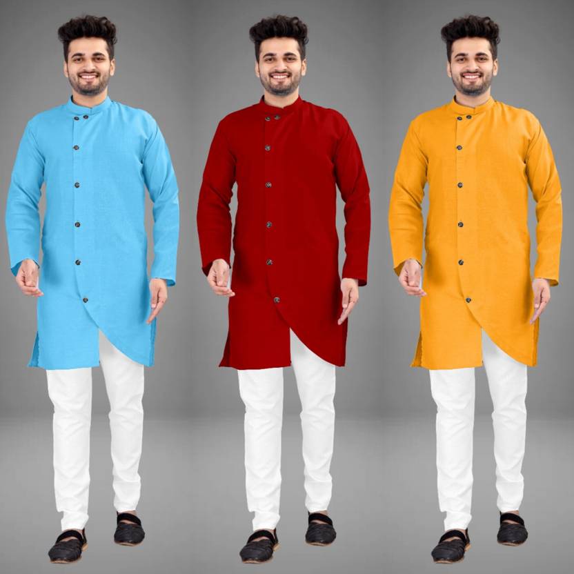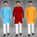 Pack of 3 Men Solid Cotton Blend Trail Cut Kurta (Multicolor)