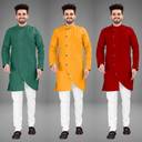 Pack of 3 Men Solid Cotton Blend Trail Cut Kurta (Multicolor)