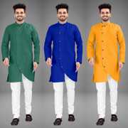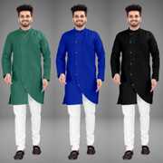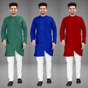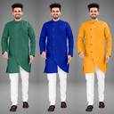 Pack of 3 Men Solid Cotton Blend Trail Cut Kurta (Multicolor)