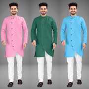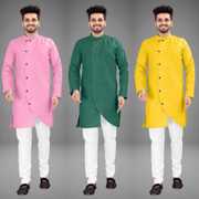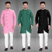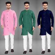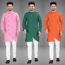 Pack of 3 Men Solid Cotton Blend Trail Cut Kurta (Multicolor)