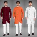 Pack of 3 Men Self Design Cotton Blend Trail Cut Kurta (Multicolor)