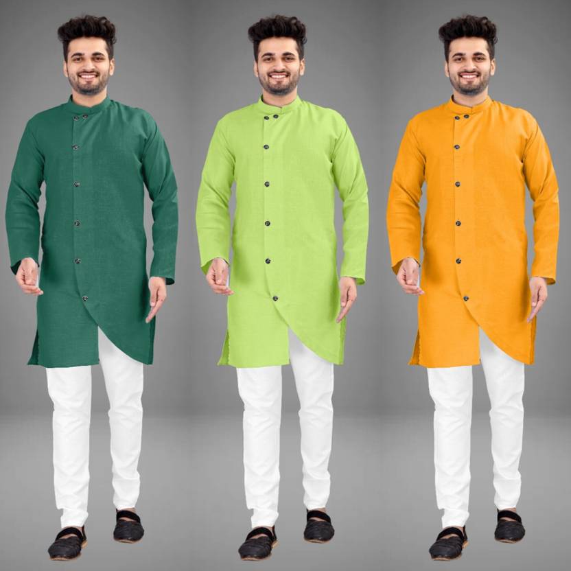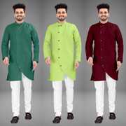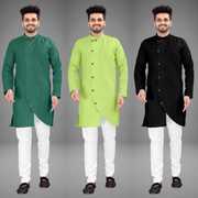 Pack of 3 Men Self Design Cotton Blend Asymmetric Kurta (Multicolor)
