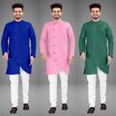Pack of 3 Men Self Design Cotton Blend Trail Cut Kurta (Multicolor)