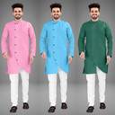 Pack of 3 Men Self Design Cotton Blend Trail Cut Kurta (Multicolor)