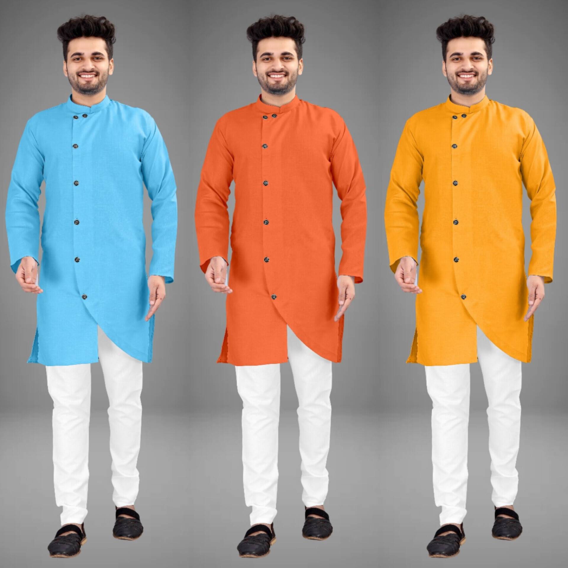 3 Men's Cross Kurtas in different colors