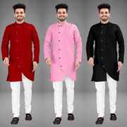 Pack of 3 Men Solid Cotton Blend Trail Cut Kurta (Multicolor)