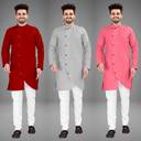 Pack of 3 Men Self Design Cotton Blend Trail Cut Kurta (Multicolor)