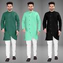 Pack of 3 Men Self Design Cotton Blend Trail Cut Kurta (Multicolor)