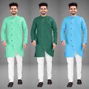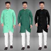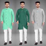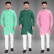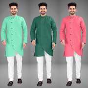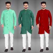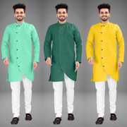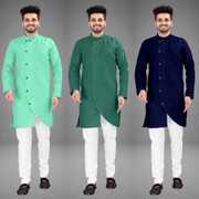 Upgrade your wardrobe with this exclusive combo of three stylish men's cross kurtas, designed for the modern man who values both elegance and comfort. Each kurta in this set is crafted with high-quality fabric, ensuring a soft and breathable feel that is perfect for all-day wear.