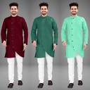 Pack of 3 Men Self Design Cotton Blend Trail Cut Kurta (Multicolor)