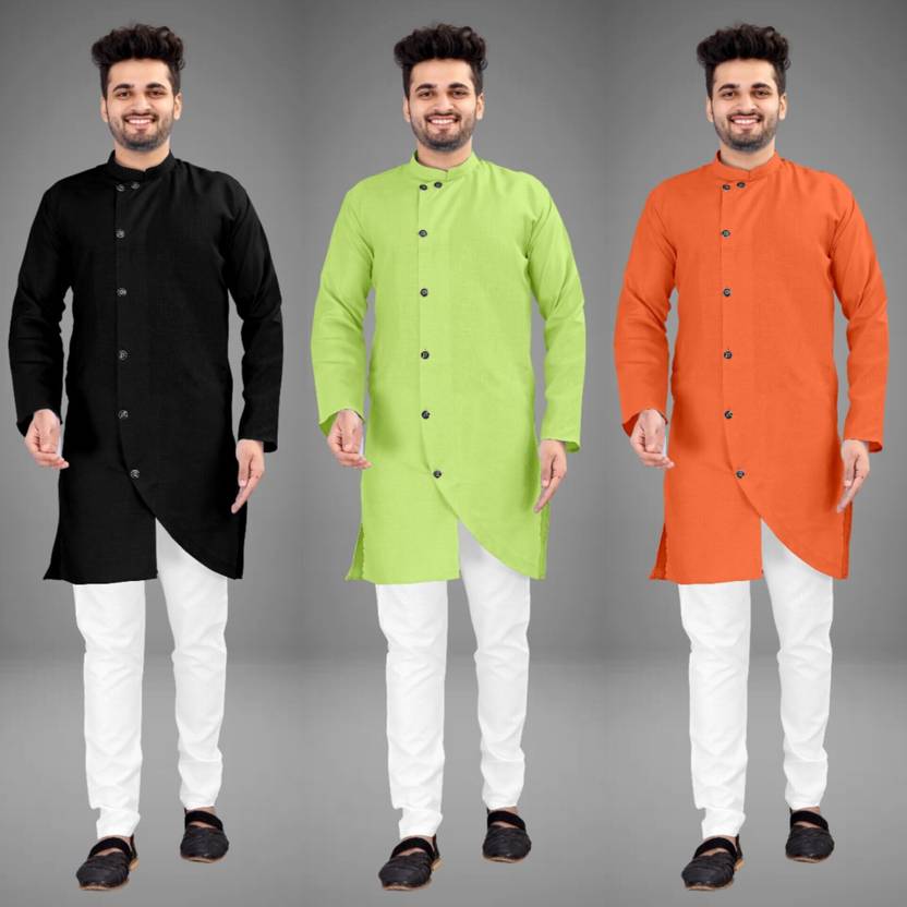 Pack of 3 Men Solid Cotton Blend Trail Cut Kurta (Multicolor)