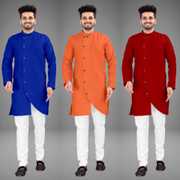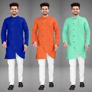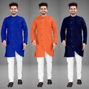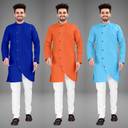 Pack of 3 Men Solid Cotton Blend Trail Cut Kurta (Multicolor)