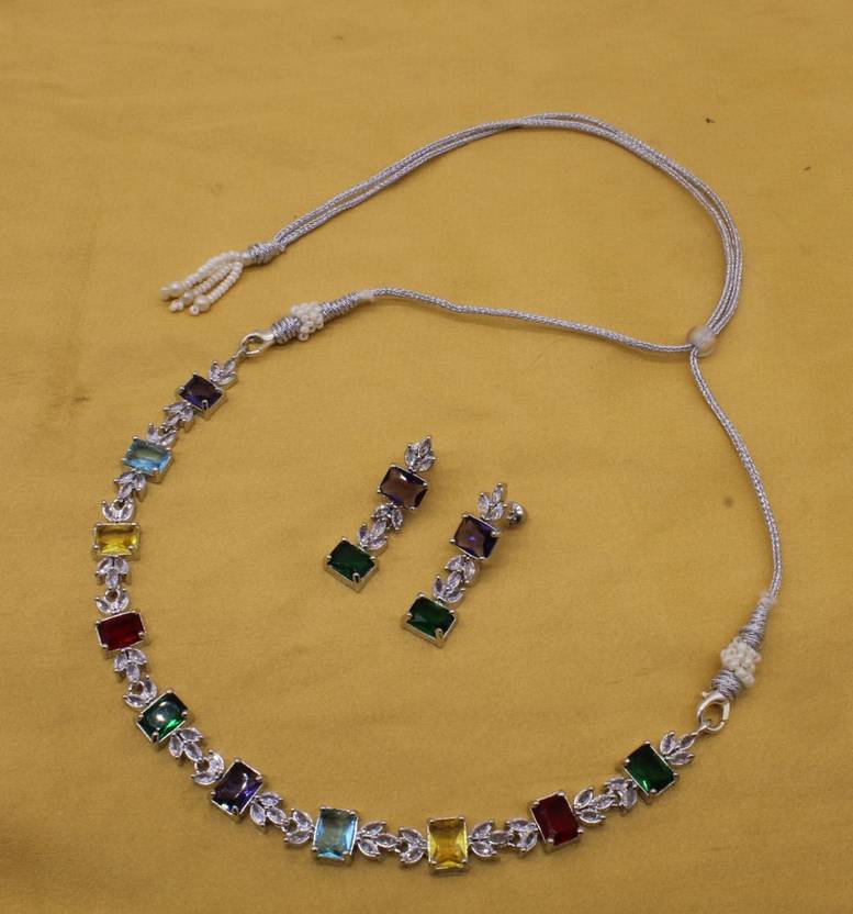 Multicolor Color American Diamond Jewellery Set for Wedding , Party and Engagement for Girls and Women