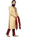 Diamond Style Golden Sherwani Set with Maroon Pajama & Dupatta | Wedding & Reception Wear Embroidered Sherwani