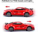 DARVICE 1:32 Scale Mustang Die-Cast Car with 4 Openable Doors Pull Back Lights & Music (Red, Pack of: 1)