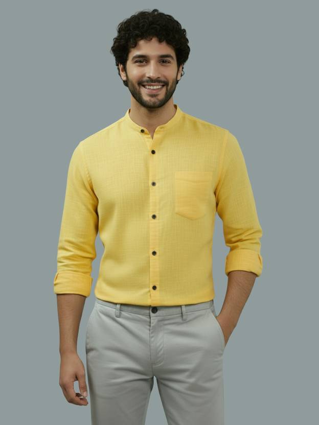 Yugnik Men Slim Fit Solid Mandarin Collar Casual Shirt