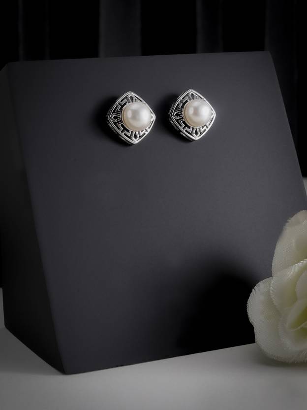 These earrings feature a stud design adorned with lustrous freshwater pearls, capturing the essence of refined sophistication. The earrings exude grace reflecting the eminent qualities of the wearer.