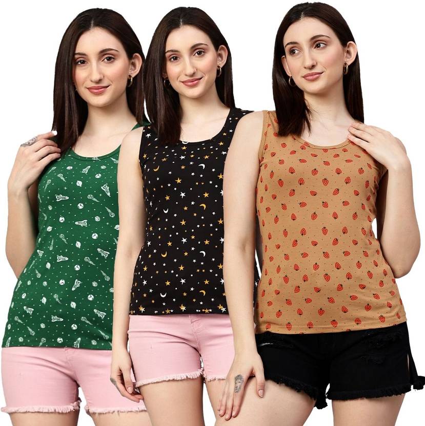 Pack of 3 Casual Sleeveless Printed Women Multicolor Top
