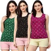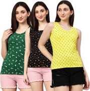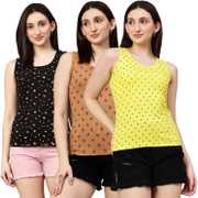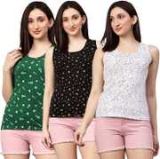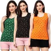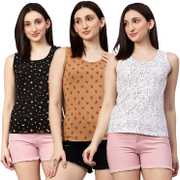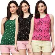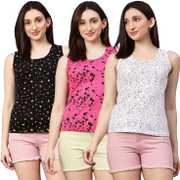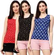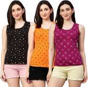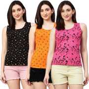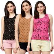 Pack of 3 Casual Sleeveless Printed Women Multicolor Top