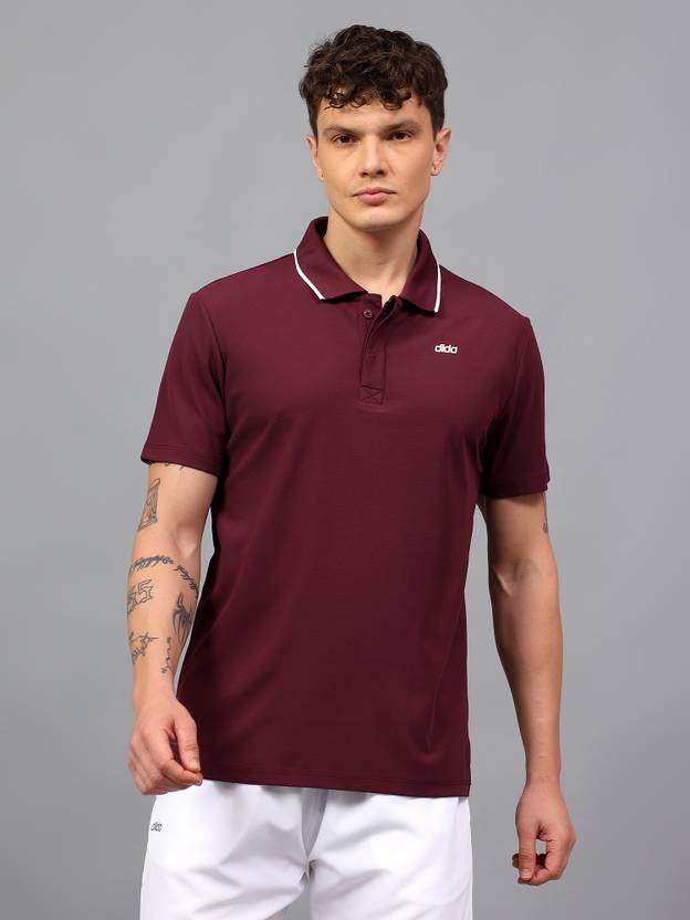 DIDA Printed, Solid Men Polo Neck Maroon T-Shirt
