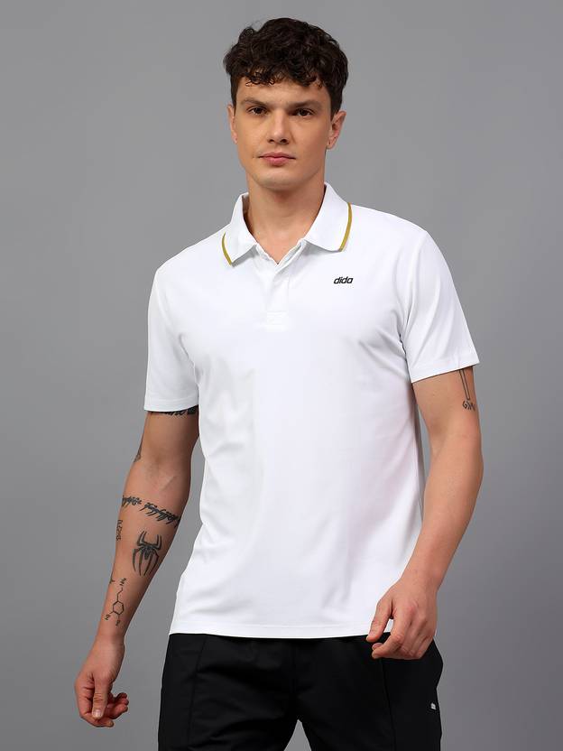 DIDA Printed, Solid Men Polo Neck White T-Shirt
