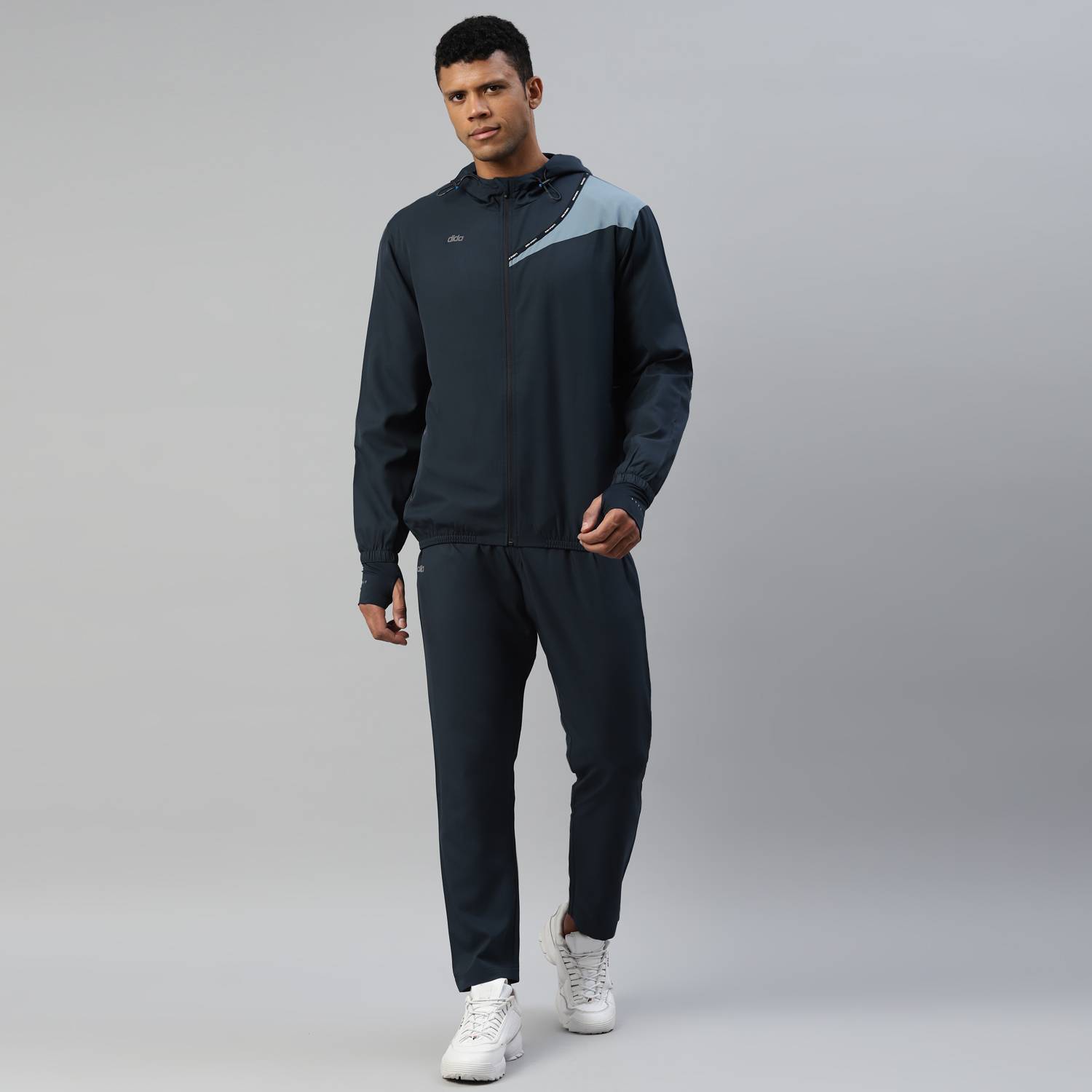 This Hoodie Tracksuit is a perfect blend of style, comfort, and eco-consciousness. Crafted from 100% recycled polyester, it embodies sustainable fashion. The front side features a convenient main zipper opening, allowing easy wear and removal. A contrast panel enhances its aesthetic appeal, adding a touch of elegance to your look. The quick-dry fabric ensures you stay active and fresh throughout the day, making it ideal for various activities. Plus, the tracksuit comes with foldable gloves, catering to your workout needs. With its functional design and commitment to sustainability, this tracksuit is a must-have for fashion-forward individuals who care about the environment.