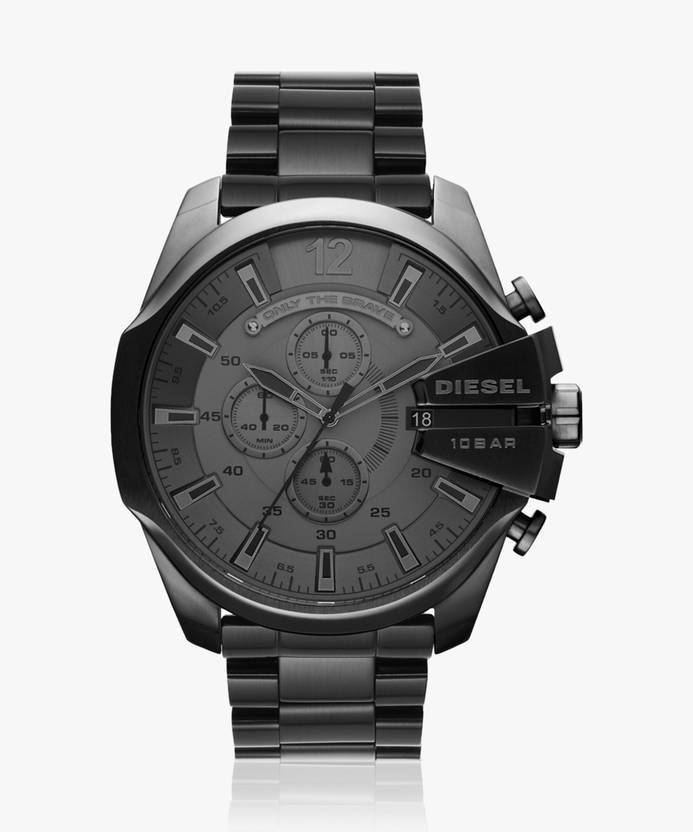A watch made to exert your power with style, Mega Chief men's chronograph watch from the House of Diesel is a must have for every influential man out there. Gunmetal plating from head to toe provides unparalleled stealth to this forward newcomer. Mega Chief explodes with gunmetal plating on the dial, case and bracelet. It is easy to wear from work to your workout and everything in between.