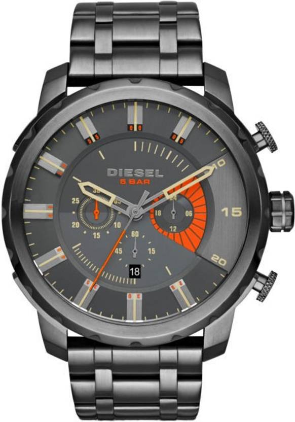 As the newest addition to the Diesel family, Stronghold excels in sleek gunmetal plating with a black dial and orange accents.??