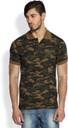 Camouflage Men Military Camouflage Polo Neck Cotton Blend Green T-Shirt