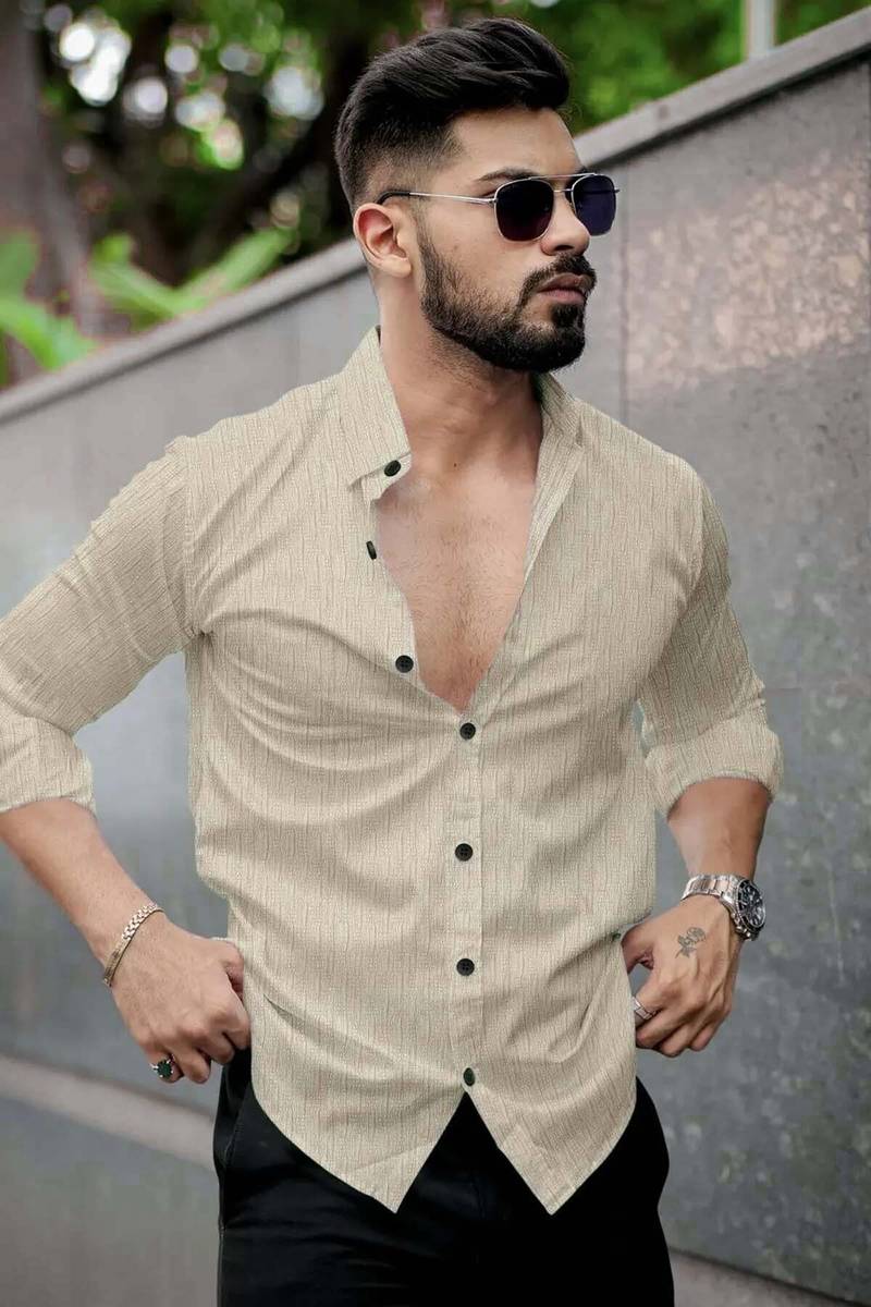 DIGIMI Men Solid Casual Beige Shirt