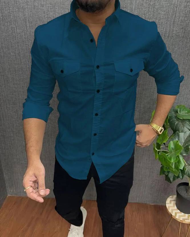 Men Regular Fit Solid Button Down Collar Casual Shirt