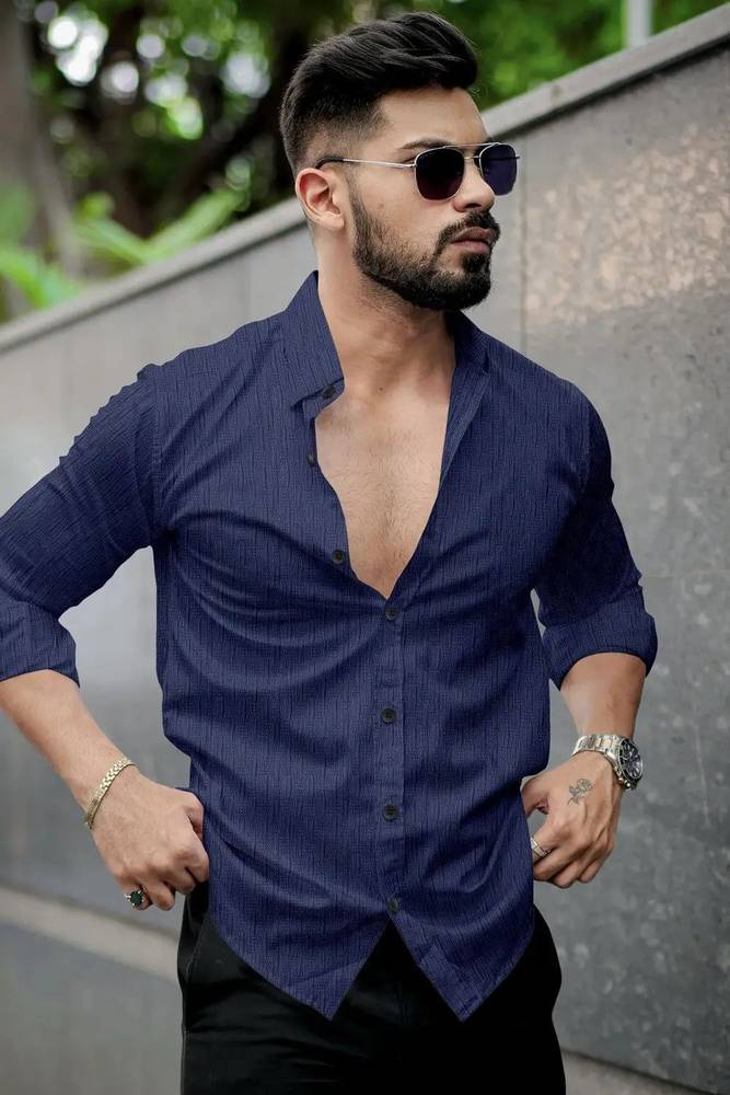 DIGIMI Men Solid Casual Dark Blue Shirt