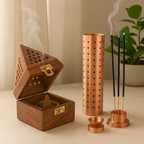 Elevate your spiritual rituals with our Wooden Dhoop Holder and Stainless Steel Incense Stick Holder Combo. This meticulously crafted set combines traditional craftsmanship with modern functionality, making it an essential addition to any pooja room, living room, or office space.