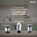 DIGISMART 1150 Watt Light Weight Lancer Dry Iron (Combo Offer) 750 W Mixer Grinder (Kitchen Mate Powerful Motor Mixer Grinder with 3 Jars | 3 Jars | Black)
