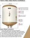 This water geyser is equipped with a plethora of safety features, including an automatic thermostat and thermal cut-out. It also includes a pressure release valve and a fusible plug, providing comprehensive safety and an extended lifespan for the appliance. The presence of all-around safety minimises the risk of electrical or overheating hazards.