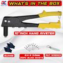 Digital Craft 10-Inch Hand Rivet Gun Non-Slip Grip with 2.4,3.2mm Size + 20pcs Blind Rivets Medium Duty Slow Hitting Rivet Gun