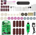 | Attachment Types | - Cutting Wheels: For slicing through metal, plastic, and wood, Grinding Stones (Aluminum Oxide & Silicon Carbide): For sharpening blades, shaping metal, and smoothing surfaces., Sanding Bands & Drums: For smoothing wood, plastic, and metal surfaces, Felt Polishing Wheels & Discs: For buffing metal, glass, and jewelry., Engraving Bits: For precision carving on wood, glass, and metal., Mini Drill Bits: For precision drilling in wood, plastic, and soft metals., Steel & Brass Wire Brushes: For rust removal, deburring, and surface cleaning.